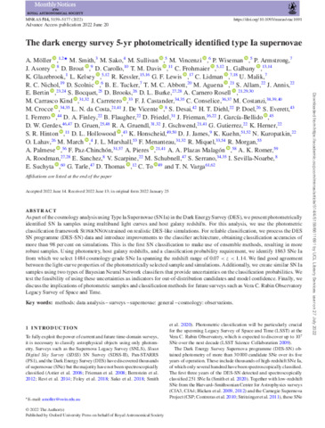 The dark energy survey 5-yr photometrically identified type Ia supernovae.