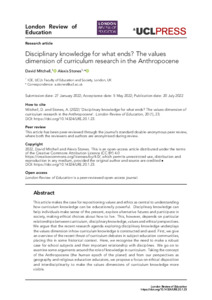 | Title: | Disciplinary knowledge for what ends? The values dimension of curriculum research in the Anthropocene |
