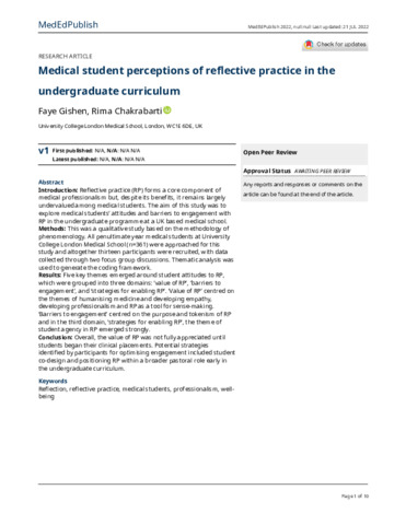 Title: | Medical student perceptions of reflective practice in the undergraduate curriculum [version 1; peer review: awaiting peer review] |