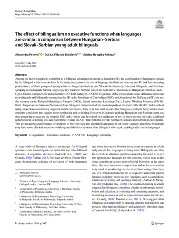 Title: | The effect of bilingualism on executive functions when languages are similar: a comparison between Hungarian–Serbian and Slovak–Serbian young adult bilinguals |