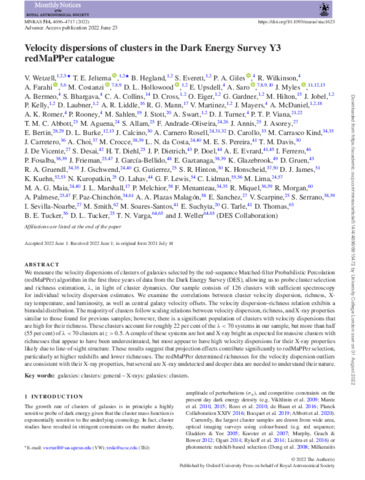 Title: | Velocity dispersions of clusters in the Dark Energy Survey Y3 redMaPPer catalogue |