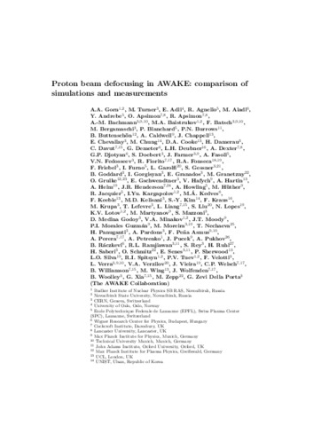 | Title: | Proton beam defocusing in AWAKE: comparison of simulations and measurements |