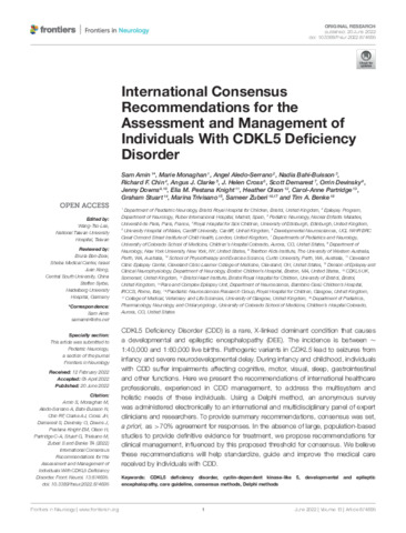 Title: | International Consensus Recommendations for the Assessment and Management of Individuals With CDKL5 Deficiency Disorder |