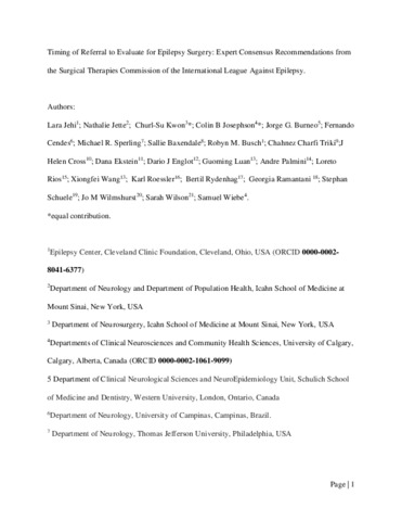 Timing of referral to evaluate for epilepsy surgery: Expert Consensus Recommendations from the Surgical Therapies Commission of the International League Against Epilepsy.