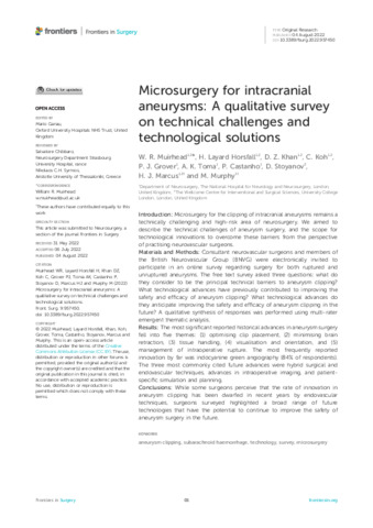 Title: | Microsurgery for intracranial aneurysms: A qualitative survey on technical challenges and technological solutions |
