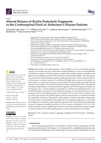 Altered Balance of Reelin Proteolytic Fragments in the Cerebrospinal Fluid of Alzheimer's Disease Patients.