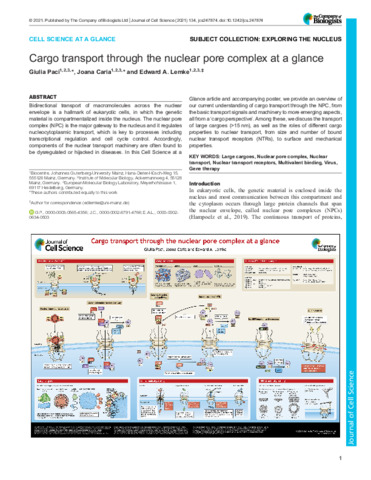 Title: | Cargo transport through the nuclear pore complex at a glance |