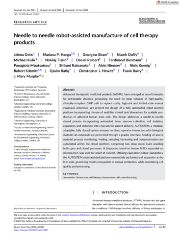 | Title: | Needle to needle robot-assisted manufacture of cell therapy products |