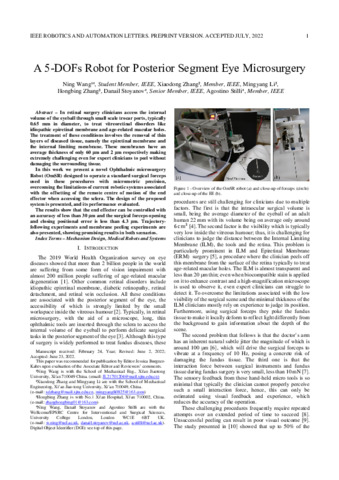 | Title: | A 5-DOFs Robot for Posterior Segment Eye Microsurgery |