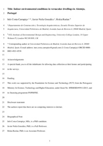 Title: | Indoor environmental conditions in vernacular dwellings in Alentejo, Portugal |