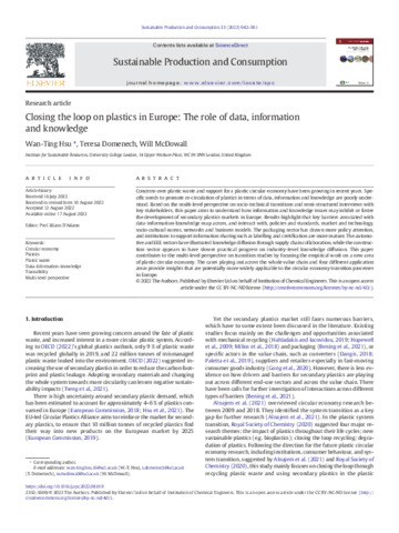 Title: | Closing the loop on plastics in Europe: The role of data, information and knowledge |