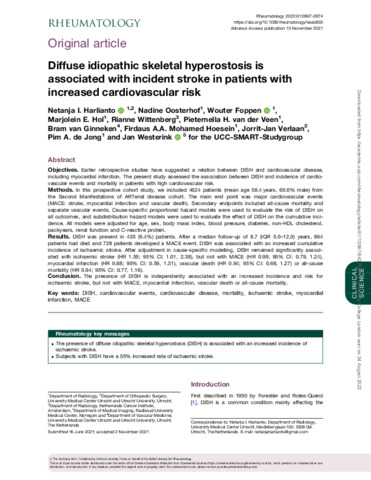 Title: | Diffuse idiopathic skeletal hyperostosis is associated with incident stroke in patients with increased cardiovascular risk |
