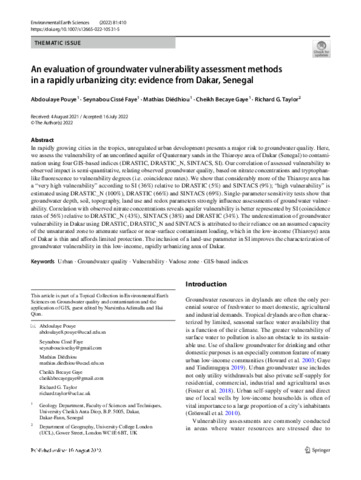 Title: | An evaluation of groundwater vulnerability assessment methods in a rapidly urbanizing city: evidence from Dakar, Senegal |