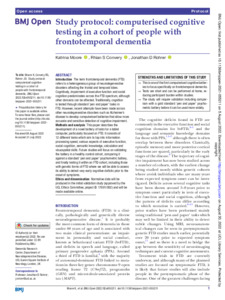 Title: | Study protocol: computerised cognitive testing in a cohort of people with frontotemporal dementia |