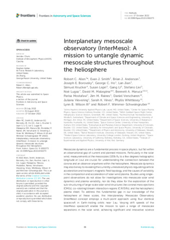 Title: | Interplanetary mesoscale observatory (InterMeso): A mission to untangle dynamic mesoscale structures throughout the heliosphere |