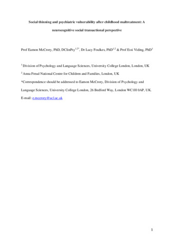 Social thinning and stress generation after childhood maltreatment: a neurocognitive social transactional model of psychiatric vulnerability.