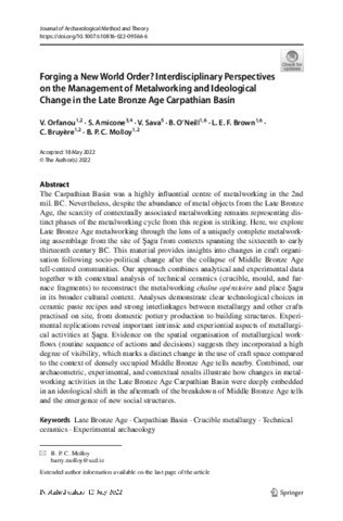 Forging a New World Order? Interdisciplinary Perspectives on the Management of Metalworking and Ideological Change in the Late Bronze Age Carpathian Basin.