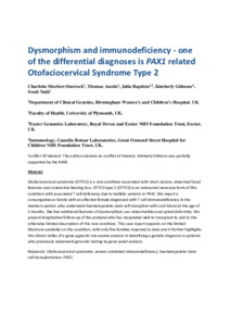 Title: | Dysmorphism and immunodeficiency - One of the differential diagnoses is PAX1 related otofaciocervical syndrome type 2 |