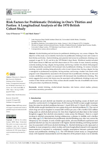 | Title: | Risk Factors for Problematic Drinking in One’s Thirties and Forties: A Longitudinal Analysis of the 1970 British Cohort Study |