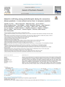 Title: | Subjective well-being among psychotherapists during the coronavirus disease pandemic: A cross-cultural survey from 12 european countries |