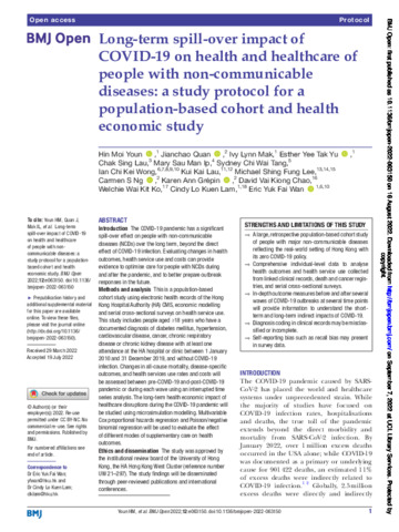 Long-term spill-over impact of COVID-19 on health and healthcare of people with non-communicable diseases: a study protocol for a population-based cohort and health economic study.