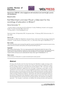 Title: | Karl Mannheim and Jean Floud: a false start for the sociology of education in Britain? |