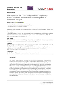 Title: | The impact of the COVID-19 pandemic on primary school students’ mathematical reasoning skills: a mediation analysis |