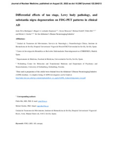 | Title: | Differential effects of tau stage, Lewy body pathology, and substantia nigra degeneration on FDG-PET patterns in clinical AD |