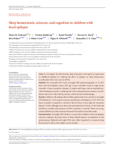 Corss_Develop Med Child Neuro - 2022 - Eriksson - Sleep homeostasis seizures and cognition in children with focal epilepsy.pdf Download (2MB) | Preview |