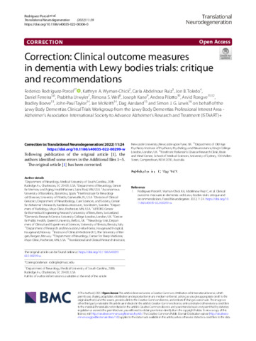 Title: | Correction: Clinical outcome measures in dementia with Lewy bodies trials: critique and recommendations |