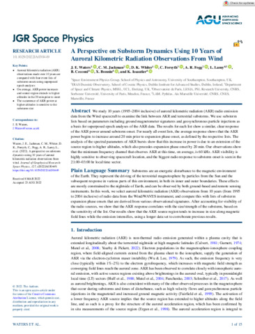 Perspective on Substorm Dynamics Using 10 Years of Auroral Kilometric Radiation.pdf - Published Version Download (841kB) | Preview |