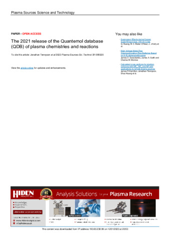 | Title: | The 2021 release of the Quantemol database (QDB) of plasma chemistries and reactions |