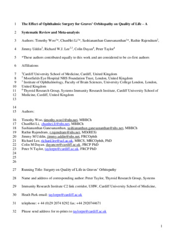 | Title: | The Effect of Ophthalmic Surgery for Graves' Orbitopathy on Quality of Life - A Systematic Review and Meta-analysis |