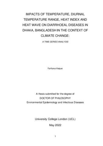 Impacts of temperature, diurnal temperature range, heat index and heat wave on diarrhoeal diseases in Dhaka, Bangladesh in the context of climate change: a time-series analysis.