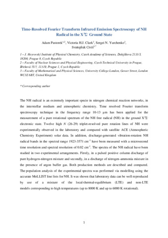 Title: | Time-resolved fourier transform infrared emission spectroscopy of NH radical in the X3Σ− ground state |