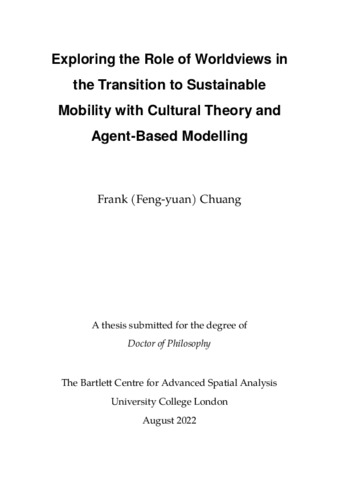 Exploring the Role of Worldviews in the Transition to Sustainable Mobility with Cultural Theory and Agent-Based Modelling.