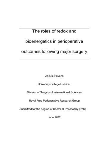 Title: | The roles of redox and bioenergetics in perioperative outcomes following major surgery |