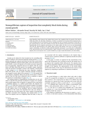 Title: | Nonequilibrium capture of impurities that completely block kinks during crystal growth |