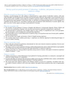 Title: | Having a good ear greatly promotes L2 phonology, vocabulary, and grammar learning in immersive settings (OASIS Summary) |