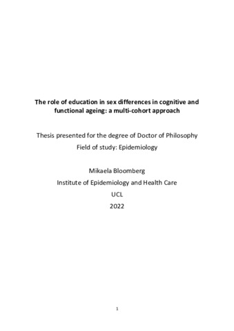 Title: | The role of education in sex differences in cognitive and functional ageing: a multi-cohort approach |