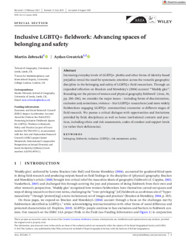 Area - 2022 - Zebracki - Inclusive LGBTQ fieldwork Advancing spaces of belonging and safety (1).pdf - Published Version Download (615kB) | Preview |