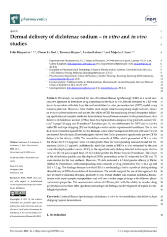 Title: | Dermal delivery of diclofenac sodium - in vitro and in vivo studies |