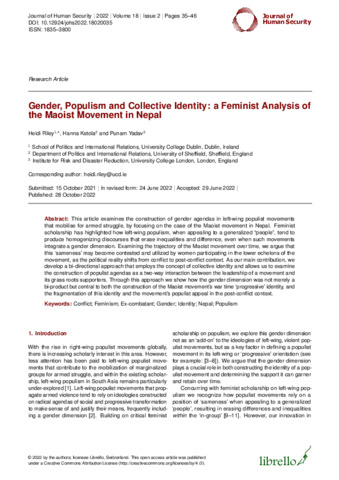Title: | Gender, Populism and Collective Identity: a Feminist Analysis of the Maoist Movement in Nepal |