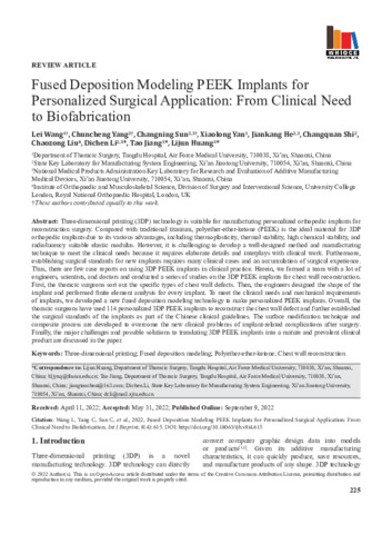 Fused Deposition Modeling PEEK Implants for Personalized Surgical Application: From Clinical Need to Biofabrication.