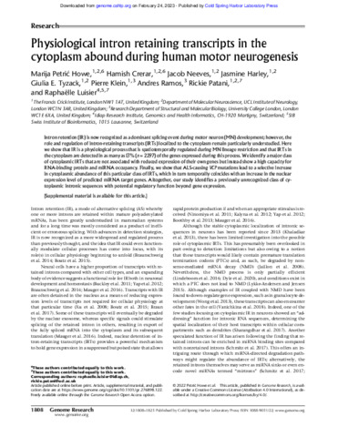 | Title: | Physiological intron retaining transcripts in the cytoplasm abound during human motor neurogenesis |