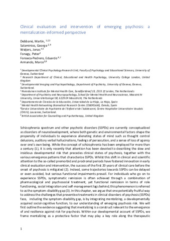 Title: | Clinical evaluation and intervention of emerging psychosis: A mentalization-informed perspective |