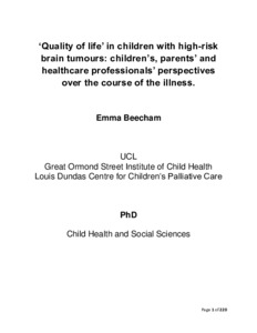 Title: | 'Quality of life' in children with high-risk brain tumours: children's, parents' and healthcare professionals' perspectives over the course of the illness |