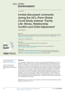 Title: | Invited discussant comments during the UCL–Penn Global Covid Study webinar ‘Family Life: Stress, Relationship Conflict and Child Adjustment’ |