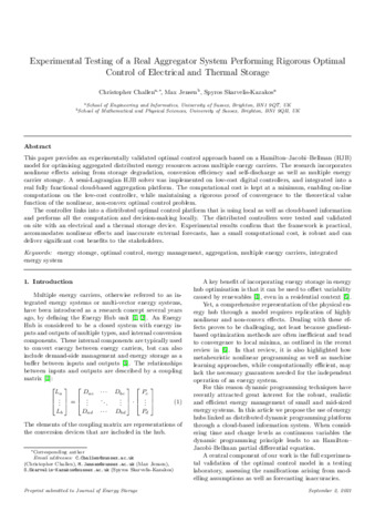 Title: | Experimental testing of a real aggregator system performing rigorous optimal control of electrical and thermal storage |