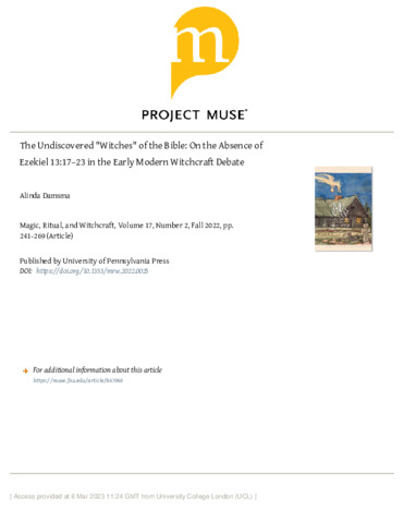 Title: | The Undiscovered “Witches” of the Bible: On the Absence of Ezekiel 13:17–23 in the Early Modern Witchcraft Debate |